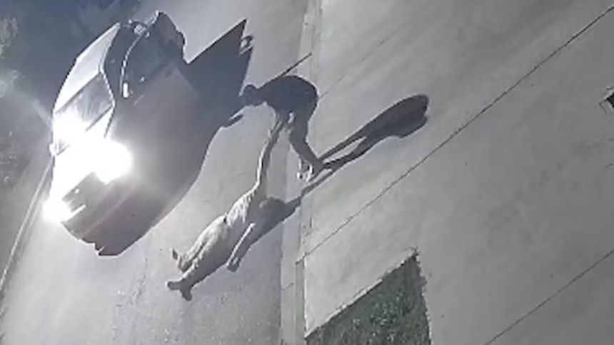 Las imágenes de la cámara de seguridad muestran a la pareja desplazándose por la vía pública instantes antes del ataque. Segundos después, el conductor de la camioneta arremete contra el joven de 21 años y lo golpea con fuerza.