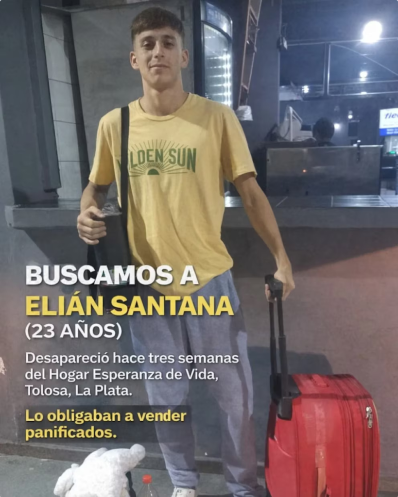 La familia de Elián Rueda Santana impulsa una campaña para su localización y crece la preocupación por su paradero. El joven de 23 años permanece desaparecido desde hace casi un mes, luego de haberse retirado del Hogar Esperanza de Vida de La Plata, donde había iniciado un tratamiento por consumo problemático.