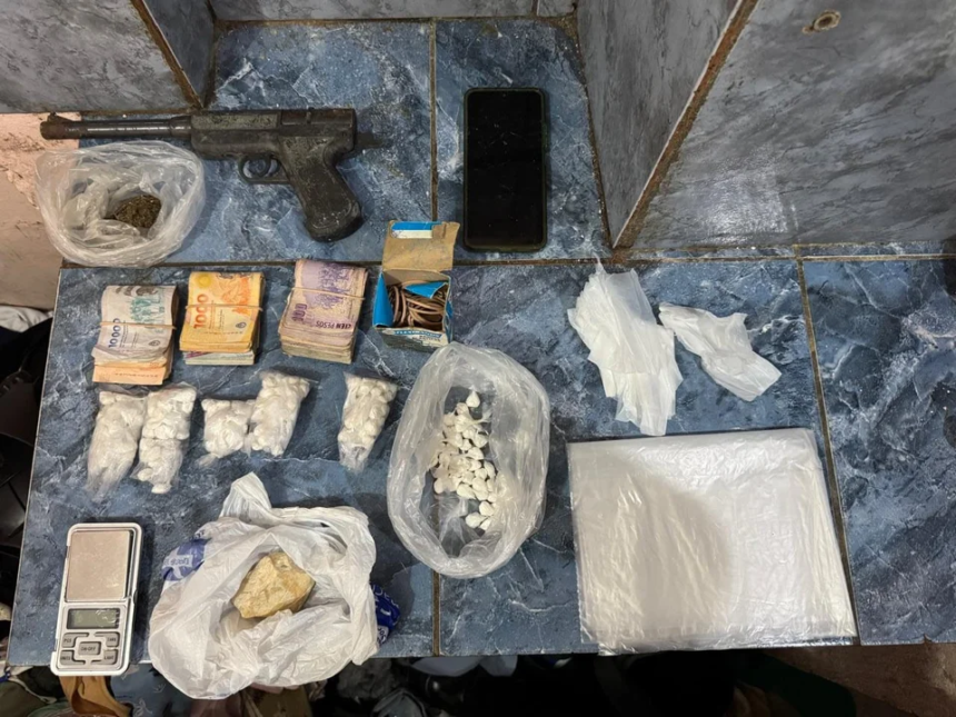 Dentro del domicilio donde operaba el punto de venta ilegal, los agentes encontraron cocaína, marihuana, elementos utilizados para el fraccionamiento de estupefacientes y un arma de fuego calibre 32.