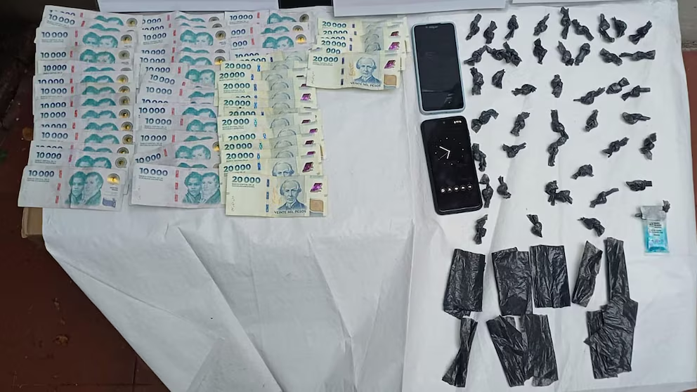 Además, se secuestraron 50 envoltorios de cocaína listos para su comercialización, dinero en efectivo —que sería producto de la venta de droga—, dos vehículos utilizados para el reparto, elementos para el corte y fraccionamiento de los estupefacientes, y dos teléfonos celulares que serán analizados para profundizar la investigación.