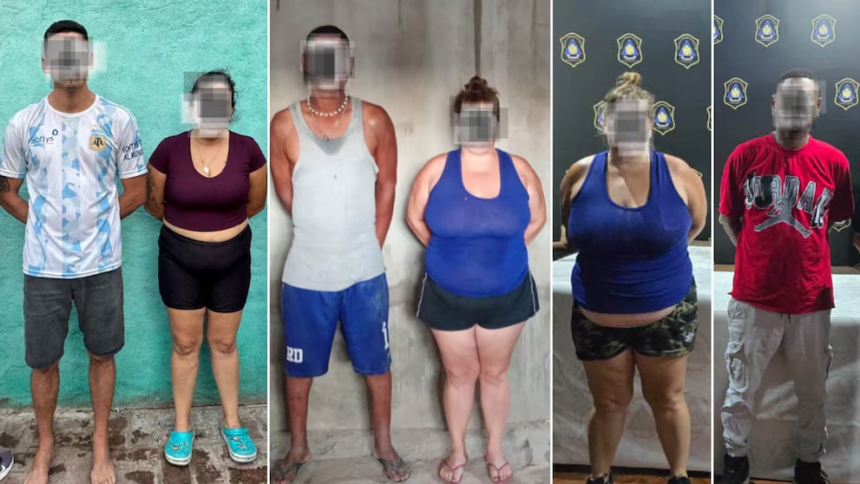 Entre los detenidos se encuentran Norberto Ángel Chiesa (43), Luciana Cisterna (45), Geremías Horacio Pacheco (40), Macarena Melina Alcaraz (34), Blanca González Velázquez (34) y David de Sena Arias (43). De acuerdo con las fuentes, los dos últimos poseen documentación extranjera.