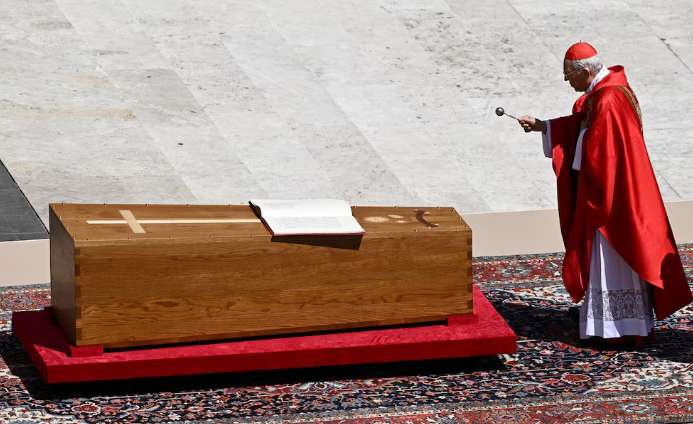 El cardenal Giovanni Battista Re impartió la bendición sobre el ataúd del papa FranciscoFoto Reuters / Dylan Martinez