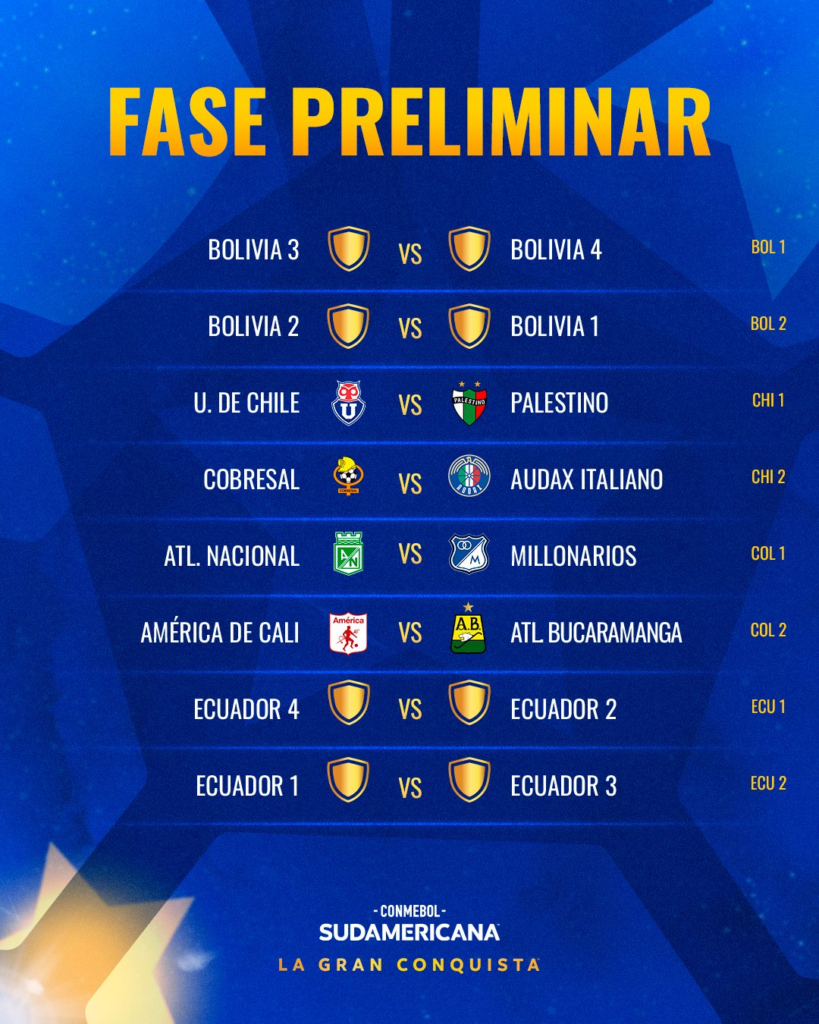 LOS 16 CRUCES DE LA FASE PREVIA DE LA COPA SUDAMERICANA
