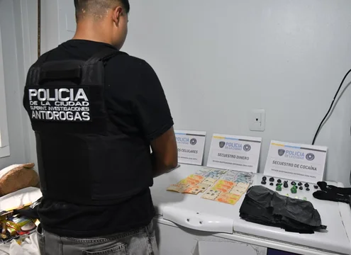 Durante el procedimiento también se incautaron una balanza de precisión, bolsas preparadas para el fraccionamiento de la droga y 310.000 pesos en efectivo. En tanto, en un espacio común del edificio se halló un revólver Smith & Wesson calibre 357, con seis municiones en el tambor y en condiciones de disparo.