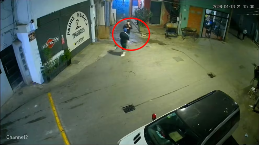 De acuerdo con el registro, eran las 21:15 cuando los atacantes llegaron caminando hasta la calle Alpaca al 2000, frente a un kiosco donde una vecina se disponía a realizar compras. En ese momento, uno de los agresores —vestido con ropa oscura y gorra negra— extrajo un arma de fuego y disparó primero contra los pies del adolescente.