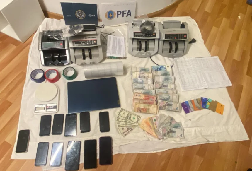 Además, se incautaron más de $14 millones en billetes de baja denominación, tres chalecos antibalas, dos chalecos tácticos policiales, tres autos, dos motos con pedido de secuestro, máquinas termoselladoras, siete contadoras de billetes, balanzas de precisión, una computadora, 22 celulares y documentación vinculada a la causa.