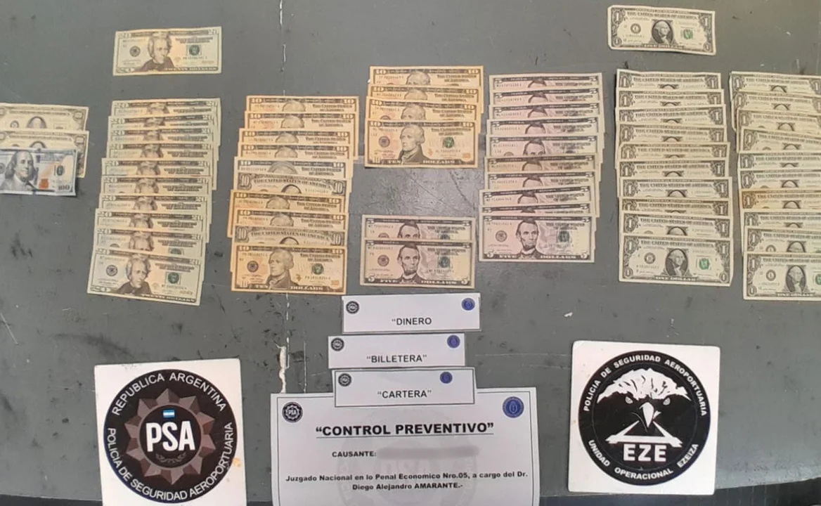 La investigación incluyó un allanamiento en su domicilio, donde se encontraron billetes de distintas divisas que sumaban 93.920 dólares y 15.730 euros.