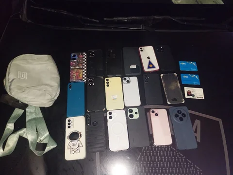 Los efectivos hallaron seis iPhone, tres Xiaomi, cinco Samsung, tres Motorola y un Infinix.