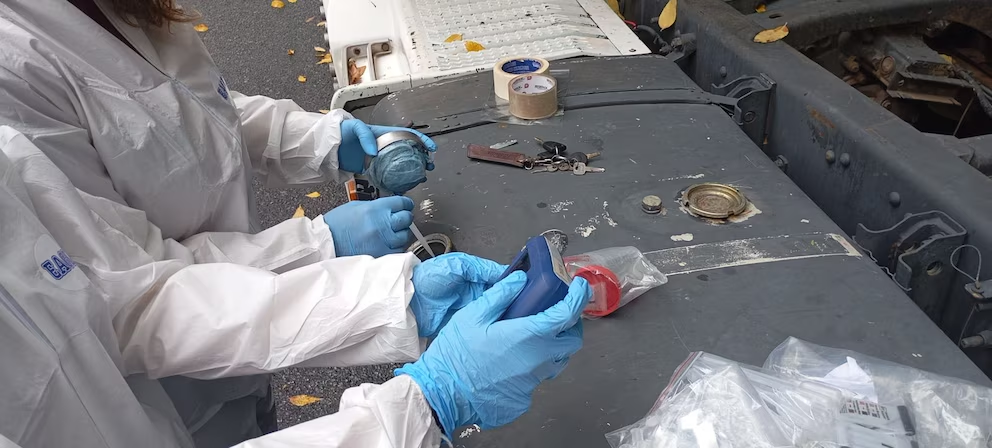 Con intervención de la fiscalía, se convocó a Policía Científica y al Laboratorio Químico de la fuerza, que realizó los análisis correspondientes con equipos especializados. A partir de una muestra extraída, se confirmó que se trataba de ketamina líquida.