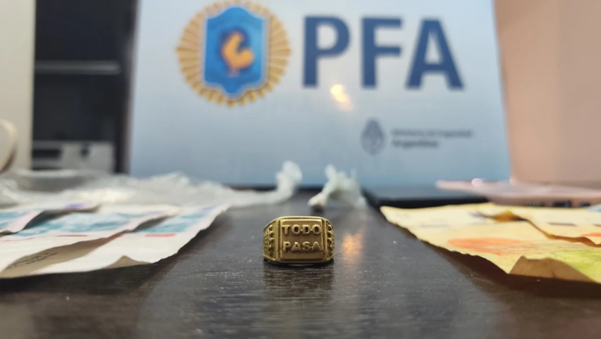 Durante el procedimiento, además, la Policía secuestró el mencionado anillo con la frase “Todo pasa”, que quedó incorporado a la causa como parte de los elementos hallados en el lugar.