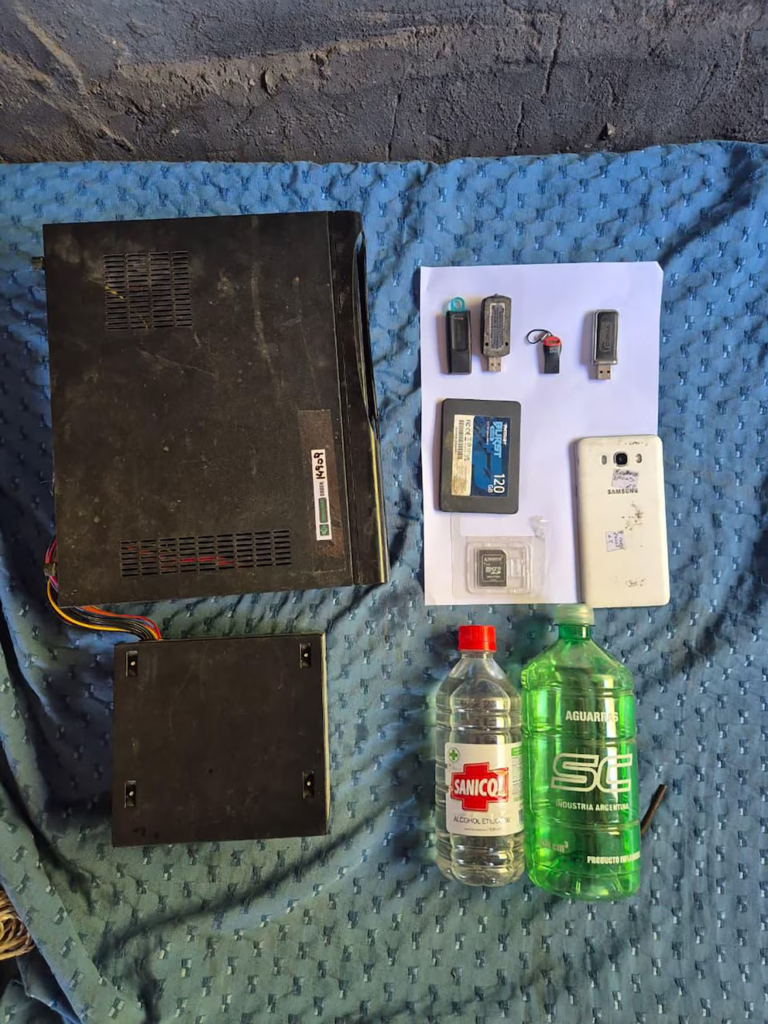 De acuerdo con la investigación, el hombre fue detenido en General Rodríguez cuando llevaba una mochila con distintos elementos vinculados a los ataques: un bidón con líquido combustible, ropa presuntamente utilizada durante los hechos, dos teléfonos celulares y una gran cantidad de panfletos políticos.