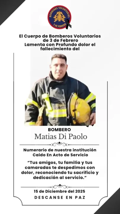Con el correr de las horas, las autoridades confirmaron el fallecimiento de uno de los efectivos. La víctima fue identificada como Matías Di Paolo, quien murió como consecuencia de las severas lesiones sufridas durante el impacto.