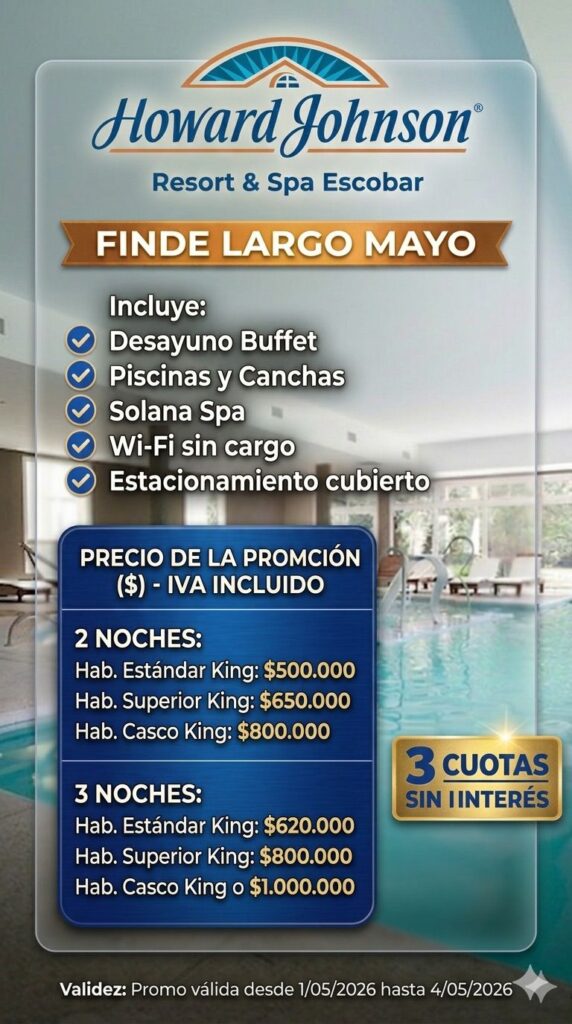 El Howard Johnson Escobar reúne todas las condiciones para aprovechar al máximo los feriados de mayo: cercanía, historia, confort y una propuesta pensada para el descanso.