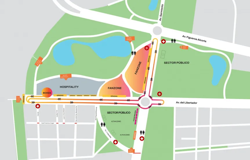 El espectáculo se desarrollará en un circuito callejero especialmente diseñado en Palermo, con eje en la Avenida del Libertador y la Avenida Presidente Sarmiento. El trazado tendrá una extensión aproximada de 2 kilómetros y será el escenario de dos show runs oficiales que prometen revivir la emoción de la máxima categoría del automovilismo.