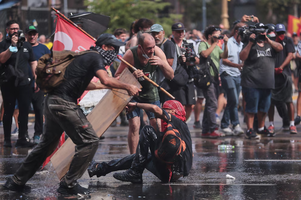 En su análisis, la funcionaria sostuvo que lo sucedido excedió el marco de las protestas habituales. “Gente con bidones de nafta y bombas Molotov en la mochila, bulones para tirar con gomera, palos de bandera convertidos en lanzapalos. ¿Cómo se llama eso? Eso es violencia extrema con la intención de desestabilizar”, expresó. En la misma línea, remarcó que, a su entender, no se trató únicamente de ataques contra la policía: “Fue un acto de terrorismo”.