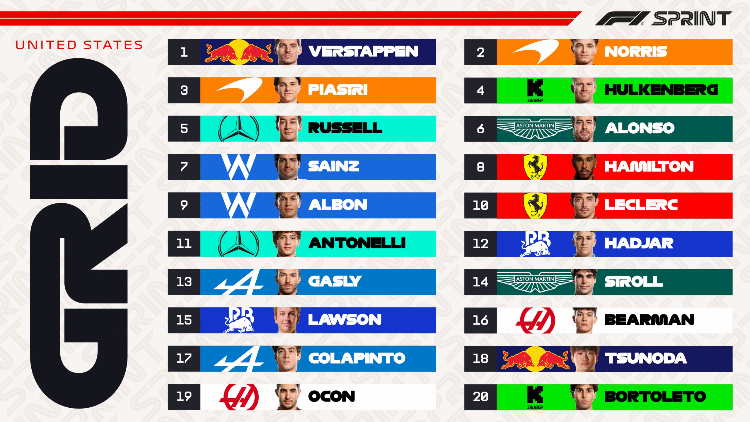 Leyendo: Gran Premio de Estados Unidos: Franco Colapinto quedó fuera en la Q1 y largará 17° en la sprint, mientras Max Verstappen se quedó con la pole