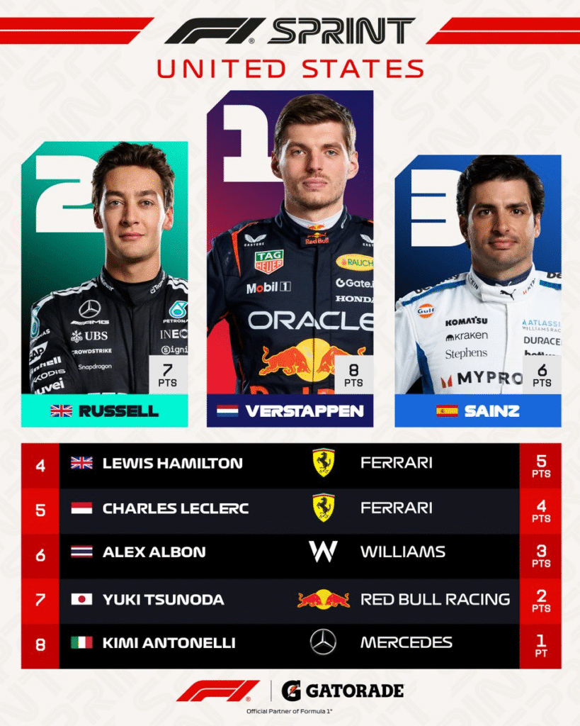 Las posiciones de la carrera sprint del GP de Estados Unidos