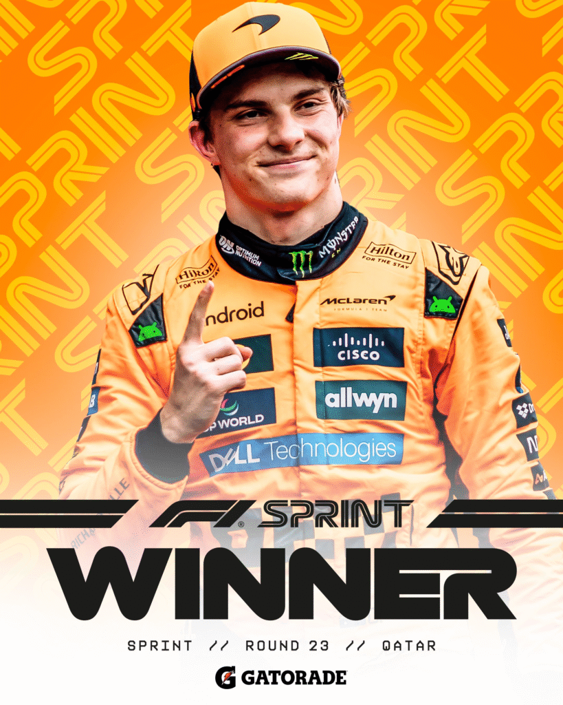 La mañana del sábado en Lusail abrió con una Sprint decisiva para el desenlace del campeonato de Fórmula 1. Oscar Piastri, que el viernes se había quedado con la pole, ratificó su gran momento al quedarse con la victoria liderando todos los giros, lo que le permitió recortar tres puntos clave en la pelea interna con su compañero Lando Norris.