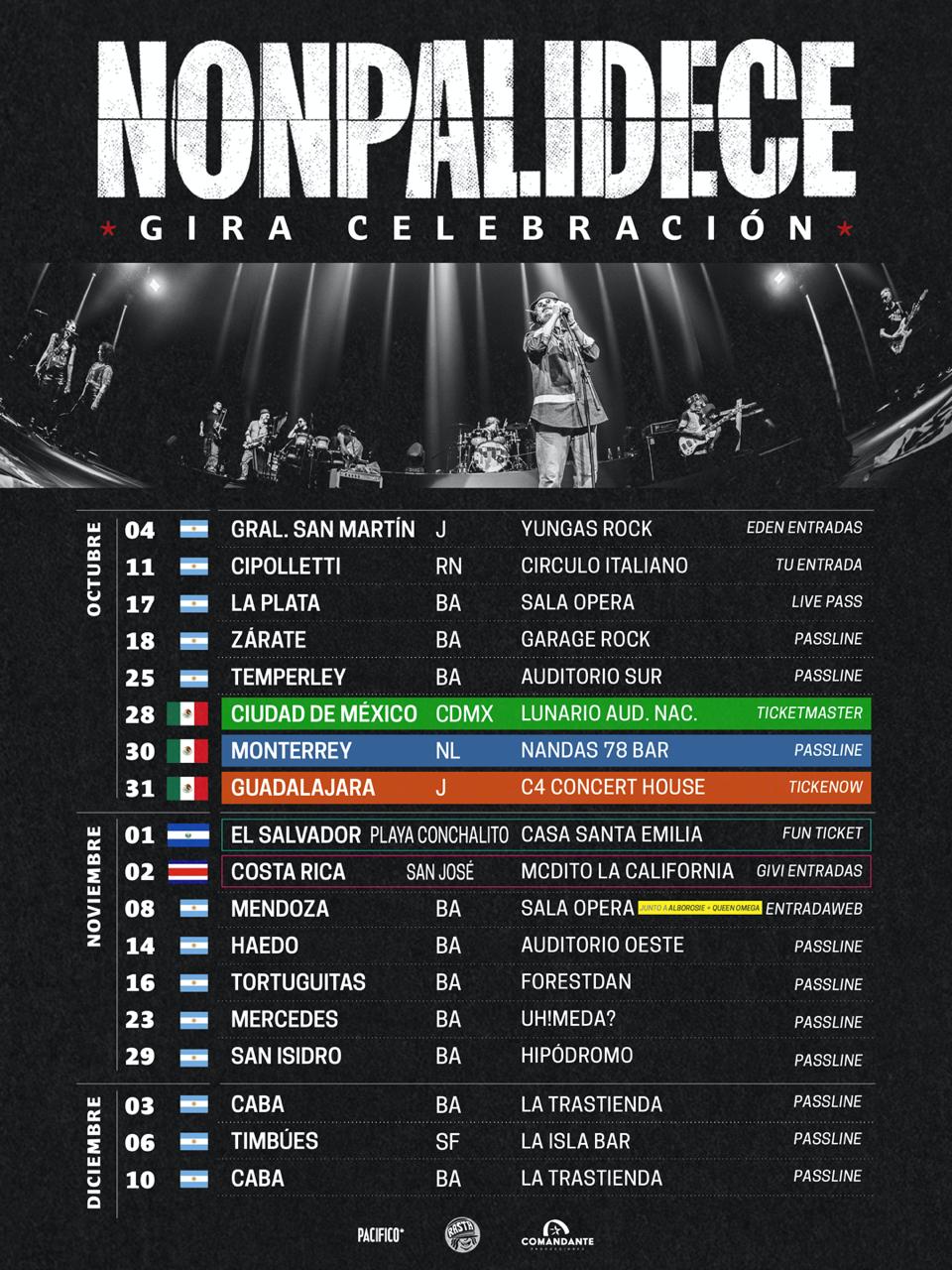 Con este tour, la banda sigue expandiendo su música dentro y fuera del país. Luego de presentarse en diversas ciudades de Argentina, Nonpalidece viajará a México, donde debutará el 28 de octubre en el Lunario del Auditorio Nacional de Ciudad de México, para luego tocar el 30 en Monterrey y el 31 en Guadalajara.