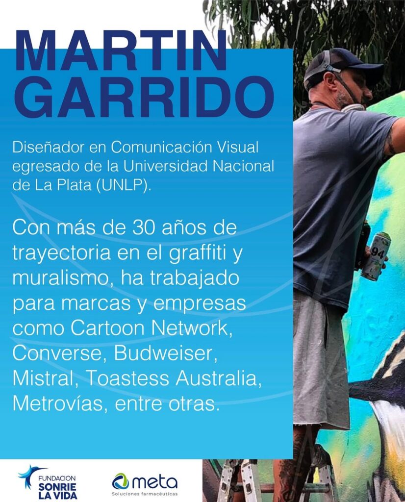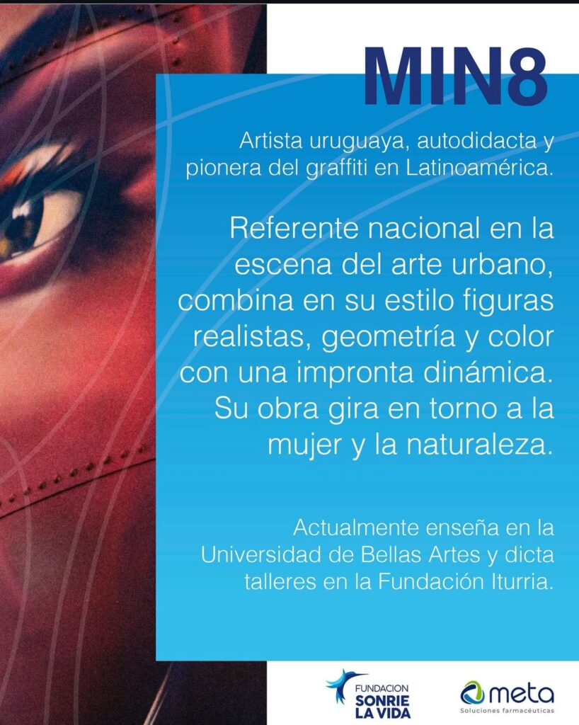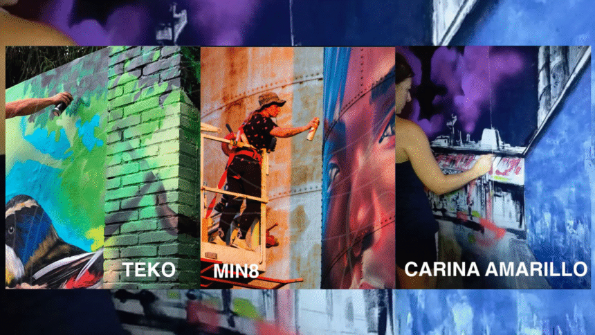 Los artistas convocados son Martín Garrido (Argentina), diseñador visual y muralista con más de tres décadas de trayectoria; MIN8 (Uruguay), referente del graffiti latinoamericano con un enfoque expresivo y humanista; y Carina Amarillo (Argentina), arquitecta, docente y artista visual reconocida por su compromiso con el arte público.