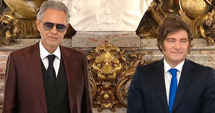 Durante la ceremonia, Milei otorgó a Bocelli la Orden de Mayo, una distinción reservada para personalidades destacadas por sus méritos sobresalientes. “Simboliza el reconocimiento de la Argentina a quienes, por sus méritos, se hacen merecedores de una de las más altas distinciones que confiere el país”, explicó la locutora a cargo del acto.