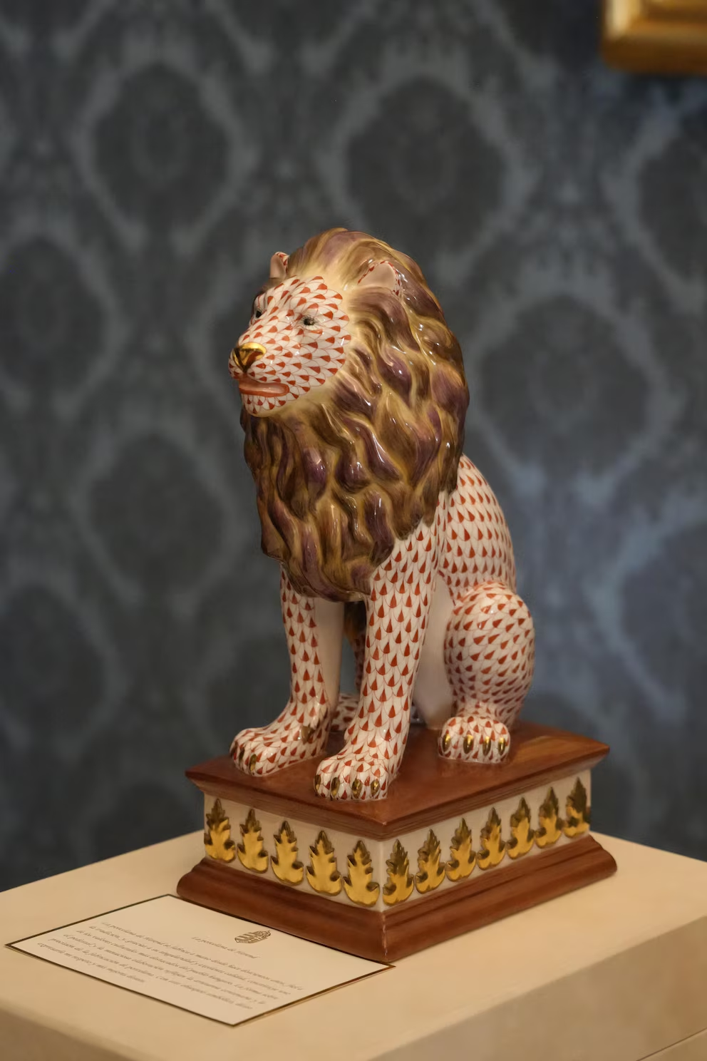 Las actividades oficiales comenzaron con un encuentro bilateral con Tamás Sulyok en el Palacio Sándor, donde Milei también se fotografió con un león de cerámica Herend, una pieza elaborada por una tradicional fábrica con más de 200 años de antigüedad.
