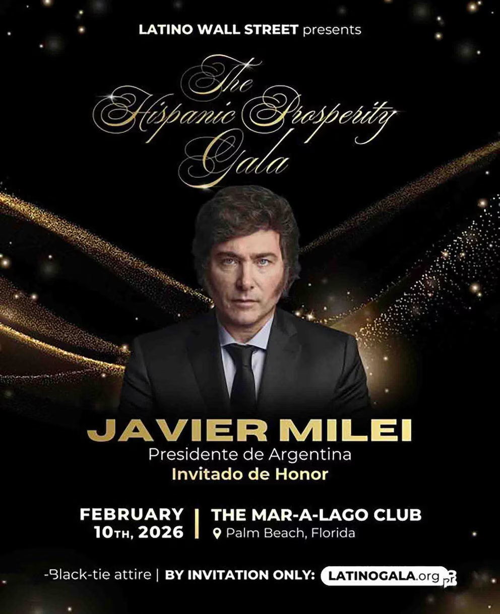 Javier Milei fue invitado a la Gala Prosperidad Hispana, programada para el 10 de febrero en Mar-a-Lago, el exclusivo complejo que Donald Trump posee en Miami, Estados Unidos.
