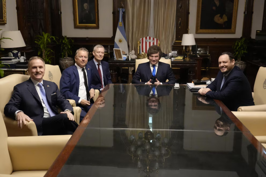 El presidente Javier Milei mantuvo este lunes una reunión en la Casa Rosada con el senador estadounidense Rand Paul, uno de los referentes del ala libertaria del Partido Republicano. Del encuentro también participaron el embajador de Estados Unidos en el país, Peter Lamelas, y el economista Demian Reidel, ex funcionario y colaborador cercano del mandatario.