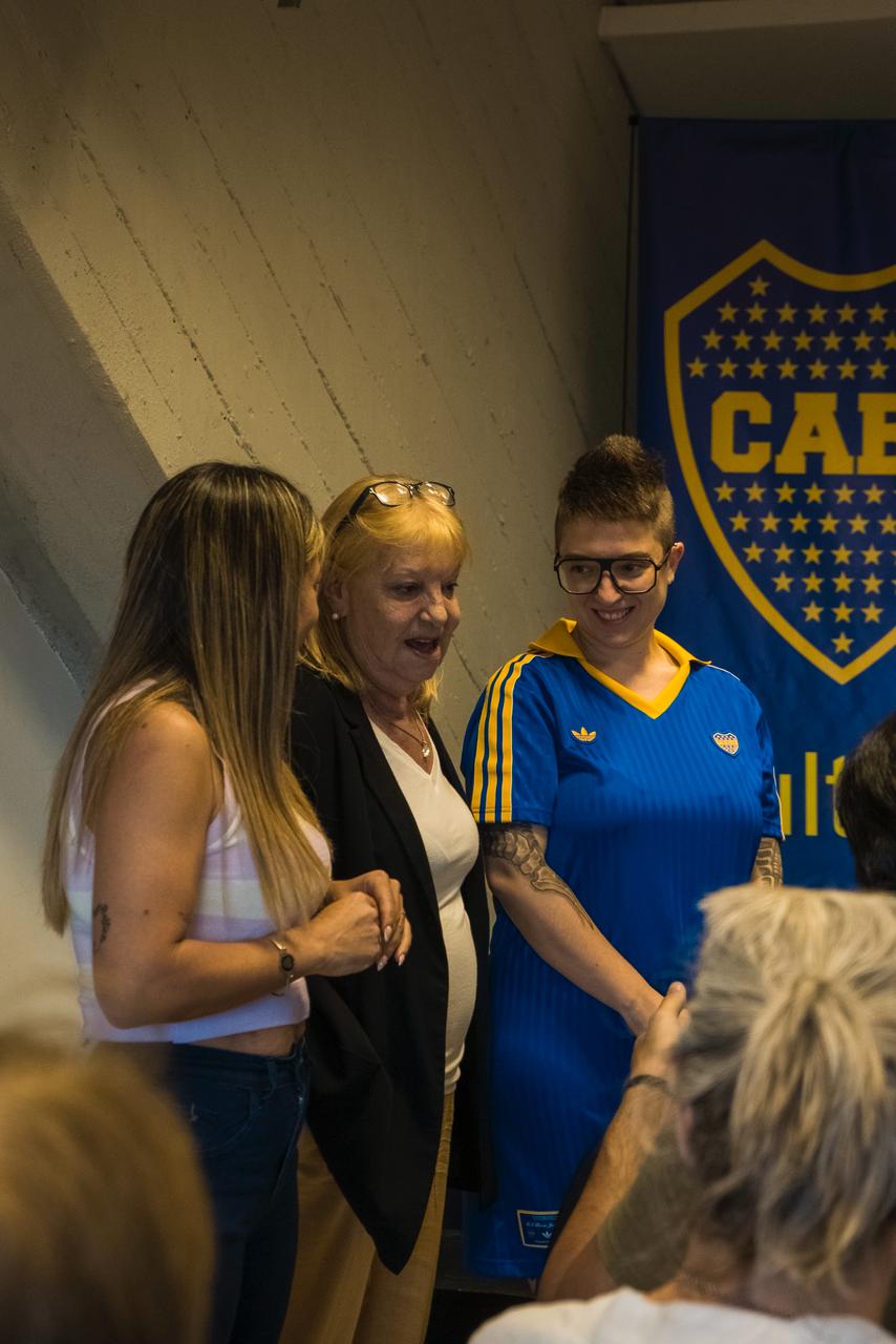 Adriana Bravo, presidenta del Departamento de Inclusión e Igualdad; Silvia Gottero, presidenta del Departamento de Cultura; y María Alejandra de Antoni. Foto Prensa Boca Juniors.