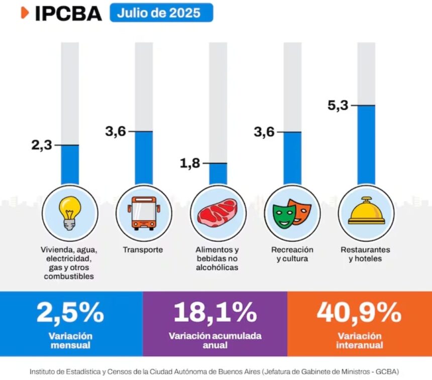 De esta manera, el dato de julio confirma una aceleración inflacionaria en la Ciudad que supera las previsiones privadas y que mantiene la presión sobre el costo de vida en el distrito porteño.