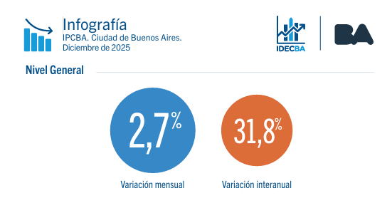 El informe oficial, detalla la evolución del Índice de Precios al Consumidor de la Ciudad de Buenos Aires (IPCBA), que mide los cambios en los valores de bienes y servicios consumidos por los hogares de la Capital. La suba de diciembre tuvo como principales motores a transporte, restaurantes y hoteles, alimentos y bebidas no alcohólicas, y vivienda, agua, electricidad, gas y otros combustibles.