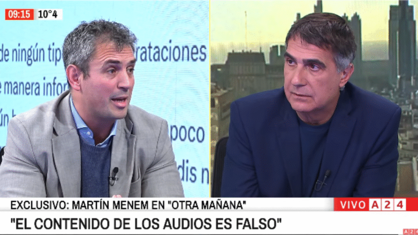 En diálogo con Antonio Laje por A24, Menem vinculó las denuncias sobre coimas en la Agencia Nacional de Discapacidad (ANDIS) con tensiones políticas derivadas de las próximas elecciones. “Probablemente jubilemos a una parte de la política y eso genera muchísimas tensiones y una monumental operación que quieren instalar”, explicó.