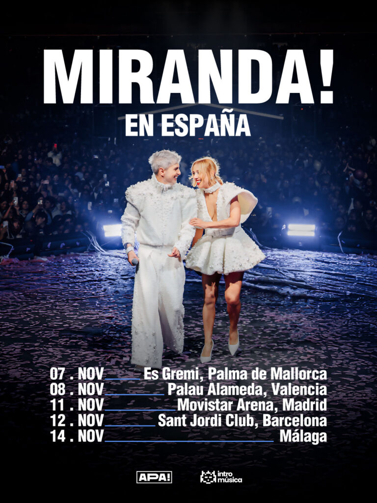 En paralelo, Miranda! anunció nuevas fechas en España: a los shows ya previstos en Madrid y Barcelona se agregan presentaciones en Palma de Mallorca, Valencia y Málaga.
