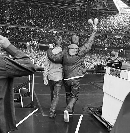 Liam y Noel Gallagher salieron juntos de la mano al escenario, marcando el inicio de una nueva era para la banda. Los acompañaron Gem Archer, Paul “Bonehead” Arthurs (quien no tocaba con ellos desde 1998), Andy Bell, el baterista Joey Waronker, y una sección de músicos de apoyo compuesta por Jess Greenfield (percusión), Christian Madden (teclados) y un trío de metales integrado por Joe Auckland (trompeta), Steve Hamilton (saxo) y Alastair White (trombón).