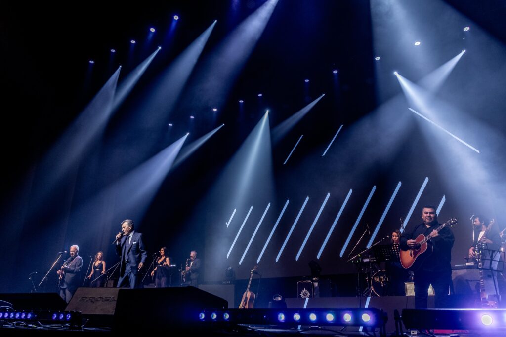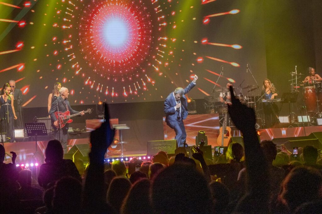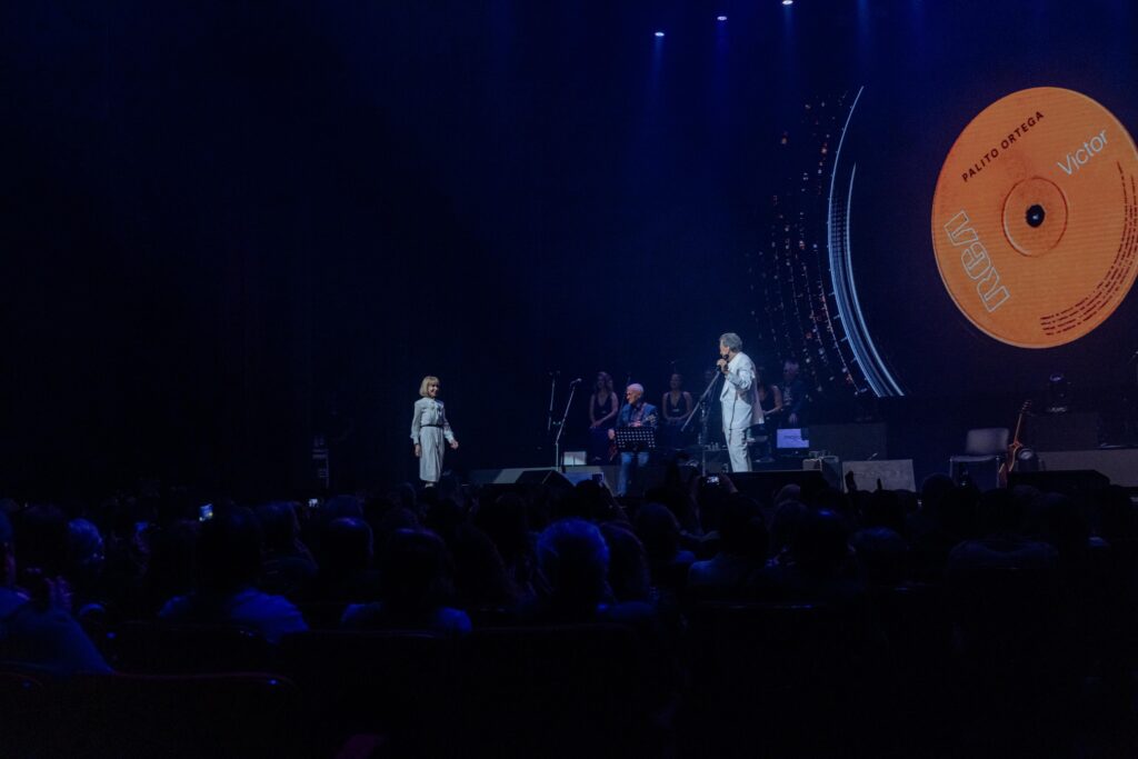 Desde el inicio, apenas pasadas las 20.45, el escenario se vistió de emotividad con una puesta imponente que combinó pantallas con imágenes de la juventud y adultez del artista, en un viaje visual y sonoro por toda una vida. Acompañado por once músicos de primer nivel, Palito desplegó un repertorio que osciló entre la alegría de clásicos como “Un muchacho como yo”, “Corazón contento”, “La felicidad” y “Despeinada”, y los momentos íntimos de baladas como “Muchacho que vas cantando” y “Sabor a nada”.