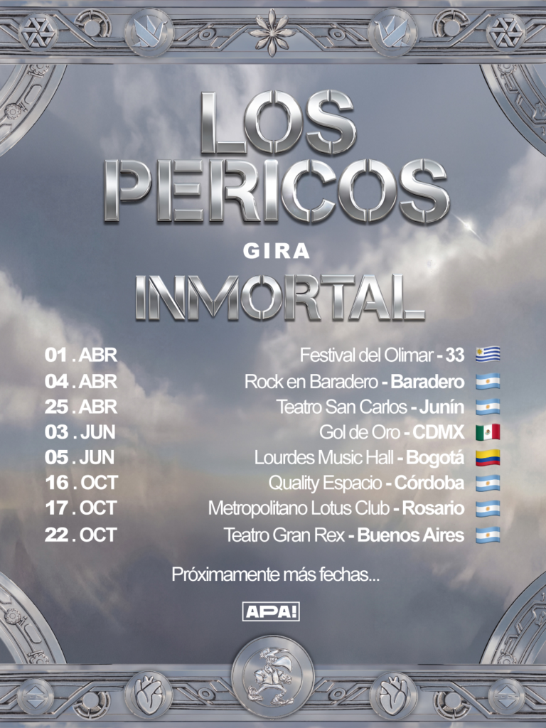 Además del lanzamiento del álbum, Los Pericos confirmaron la primera parte de la gira de presentación, que incluirá conciertos en Argentina, México y Colombia, con una fecha destacada en el histórico Teatro Gran Rex de Buenos Aires el próximo 22 de octubre.