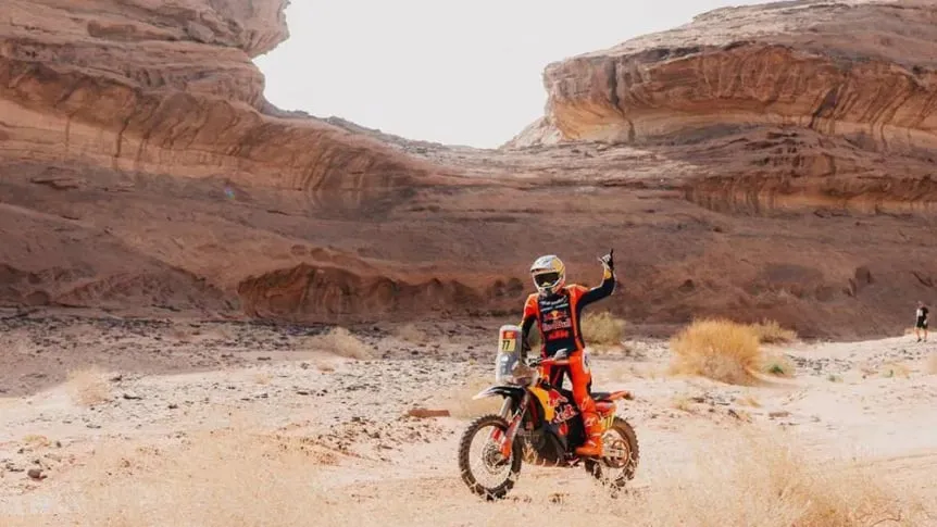 Daniel Sanders continúa marcando el ritmo en motos tras la primera etapa luego del descanso. El piloto de KTM, a pesar de finalizar cuarto en la jornada, logró ampliar su ventaja en la general y ahora lidera con un tiempo de 28:47:31, superando por 4:25 a Ricky Brabec.