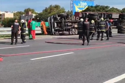 Choque y vuelco de un camión en la General Paz: un herido en la colectora