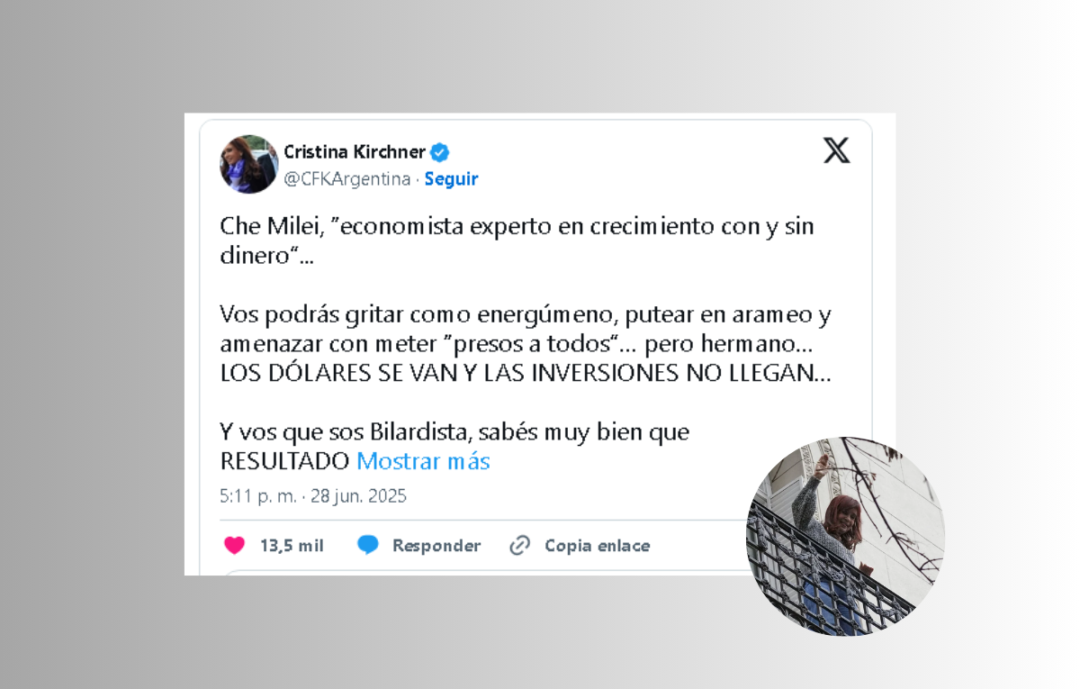 Cristina Kirchner cruzó a Javier Milei por la economía: “Estás yendo a un callejón sin salida”