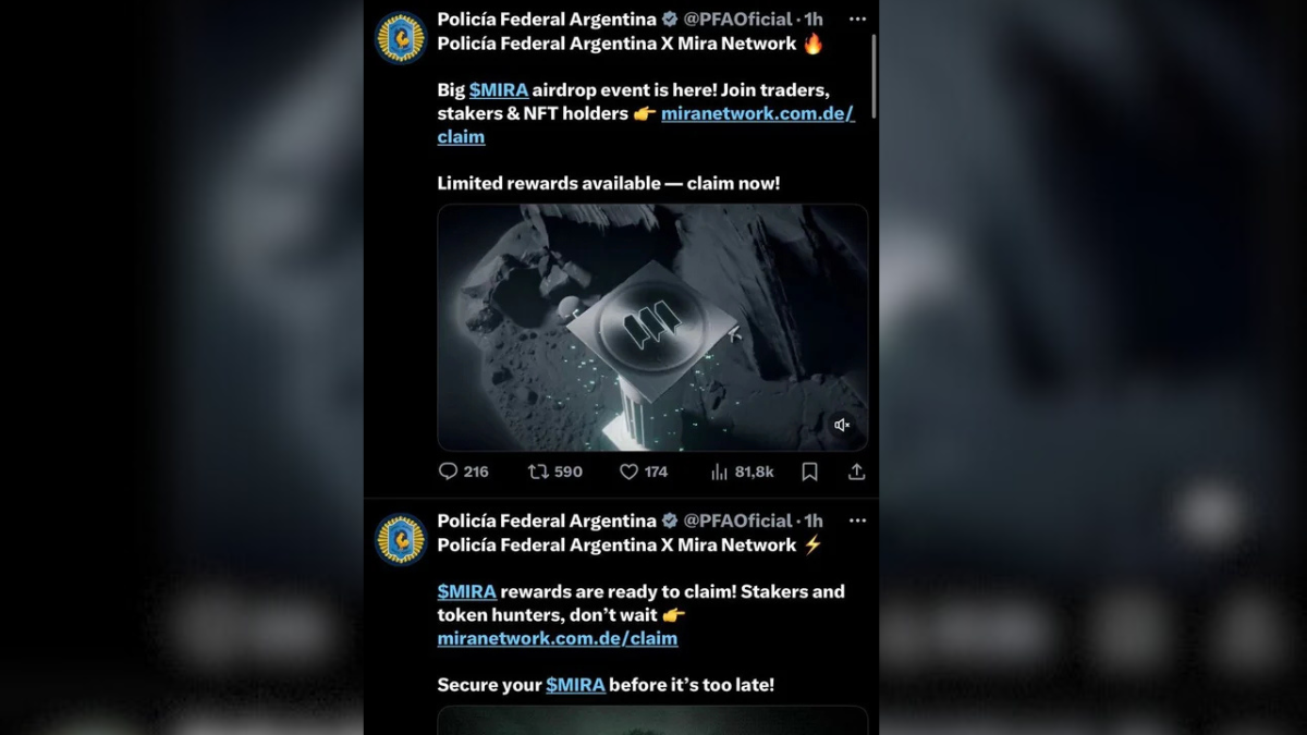 Hackearon la cuenta de X de la Policía Federal Argentina para promocionar una criptomoneda