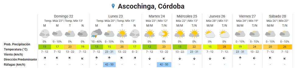 Así continuará el clima durante la semana en la región. Para el martes, se anticipa mayor estabilidad, con cielo algo más despejado y una temperatura máxima que volvería a ubicarse en torno a los 23 grados, mientras persistirán vientos leves. Estas condiciones se mantendrían a lo largo de los días siguientes.