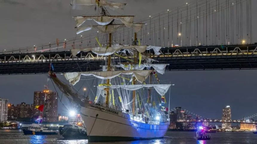 📌La embarcación impactó con sus mástiles contra la icónica estructura de Nueva York