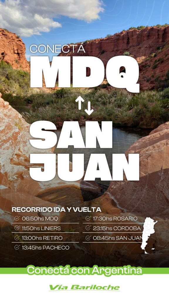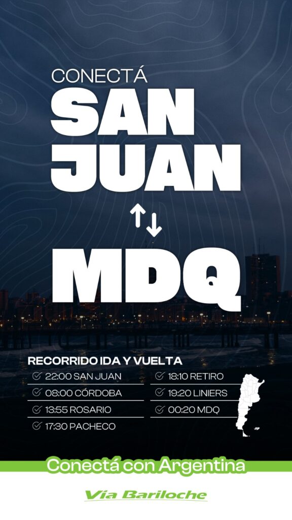 En la misma línea, se informó un nuevo servicio que unirá San Juan con Mar del Plata. Este recorrido contempla paradas en Córdoba, Rosario y Pacheco durante el trayecto, además de Retiro y Liniers, consolidando una alternativa clave para los pasajeros de la región cuyana que buscan llegar a la Costa Atlántica sin trasbordos.