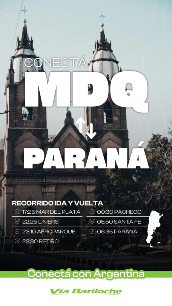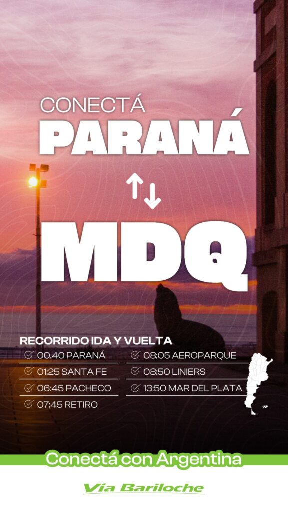 Luego, la compañía anunció la conexión directa entre Paraná y Mar del Plata, con un recorrido ida y vuelta que incluye paradas en Santa Fe, Pacheco y Retiro en el tramo de ida, y Aeroparque, Liniers y nuevamente Mar del Plata en el regreso. Los horarios fueron pensados para optimizar los tiempos de viaje y facilitar el acceso desde distintos puntos del país.
