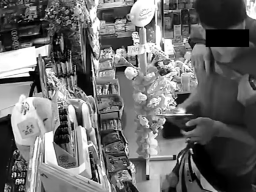 Los asaltantes sustrajeron mercadería, celulares y dinero en efectivo. En las imágenes del hecho puede observarse cómo el ladrón armado se llevó cajas de bombones y extrajo el teléfono celular del bolsillo de la víctima, quien permaneció inmóvil ante la amenaza.